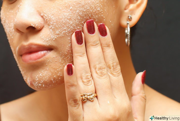 Ніжно очистіть обличчя вашим улюбленим скрабом. дотримуйтесь інструкцій, вказаних на упаковці, обробляйте шкіру від 30 секунд до однієї хвилини.
