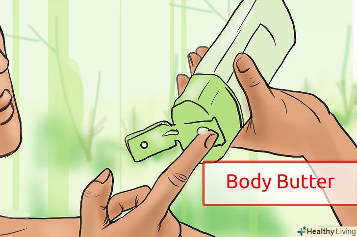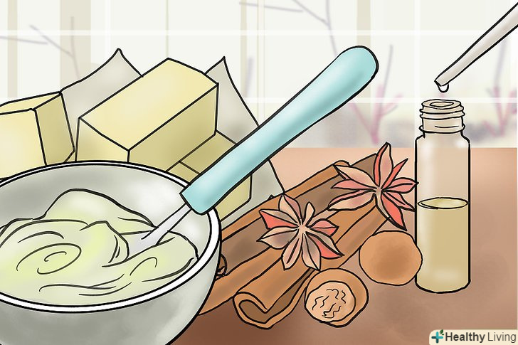 Приготуйте масло для тіла. розтопіть на паровій бані 215 грамів баттера (тверде масло) ши або кокосового баттера, 100 грамів кокосового масла і додайте 120 мілілітрів оливкової або мигдалевого масла. Перемішайте, а потім залиште в холодильнику на годину. Додайте 10-30 крапель улюбленого ефірного масла, а потім збийте міксером, щоб вийшла легка і пишна маса. На це має піти близько 10 хвилин. Перелийте все в скляну банку, охолоджуйте в холодильнику 10-15 хвилин. Масло готове! [22]