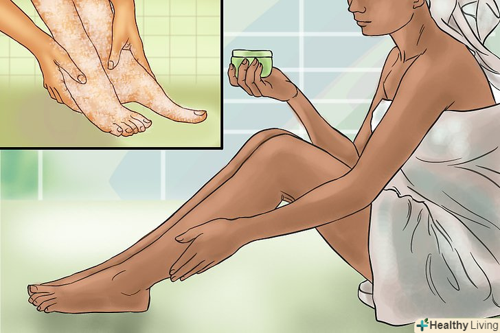 Нанесіть на шкіру масло для тіла. поки шкіра ще волога, нанесіть масло. Масло проникне в шкіру, завдяки чому та стане шовковою на дотик. Можна наносити його масажними рухами. Підійде як готовий засіб, так і саморобний.