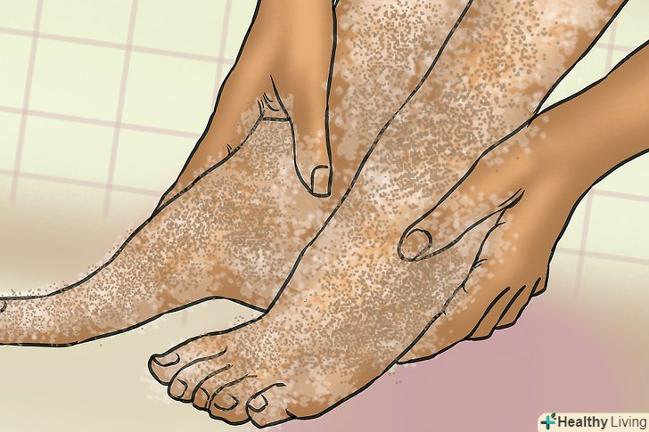 Нанесіть скраб на ноги. змішайте в банку 480 грамів англійської солі і 60 мілілітрів м'ятного ополіскувача для рота. Перемішайте до однорідної маси з консистенцією мокрого піску. Наберіть 1-2 столові ложки скрабу і втирайте в ноги, потім змийте. Зберігайте скраб в сухому прохолодному місці. [31]- Такий скраб очистить і освіжить ноги. Користуйтеся ним в кінці довгого дня або після прогулянок.