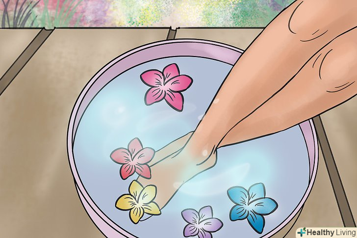 Побалуйте свої ніжки. наберіть у ванну воду і додайте свій улюблений засіб для ванни. Опустіть ноги в воду і посидьте 10-15 хвилин. Можна потерти ноги скрабом, пемзою, нанести крем і зробити педикюр. [17]
