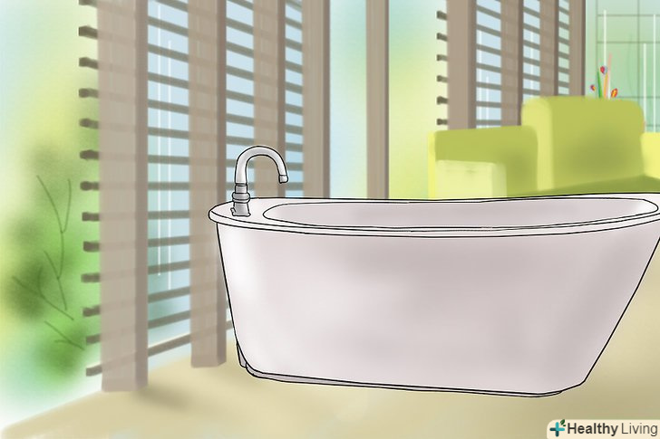 Приготуйте сіль для ванної. у великій мисці змішайте 480 грамів епсомської солі, 90 грамів соди і 40 крапель будь-якого ефірного масла. Можна також додати 50-60 грамів морської солі. Ретельно перемішайте всі інгредієнти, щоб не було грудок, і перекладіть у велику банку. Наповніть ванну теплою водою і додайте 60 грамів отриманої суміші. [19]- Можна поєднувати різні масла — наприклад, 30 крапель лавандового і 10 крапель м'ятного. [20]