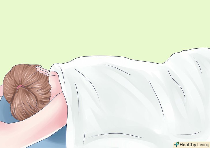 Людина, якій будуть робити масаж з гарячими каменями, повинен лягти обличчям вниз на масажний стіл або ліжко. накрийте його спину простирадлом.