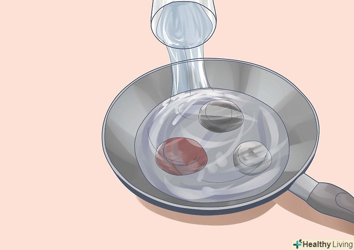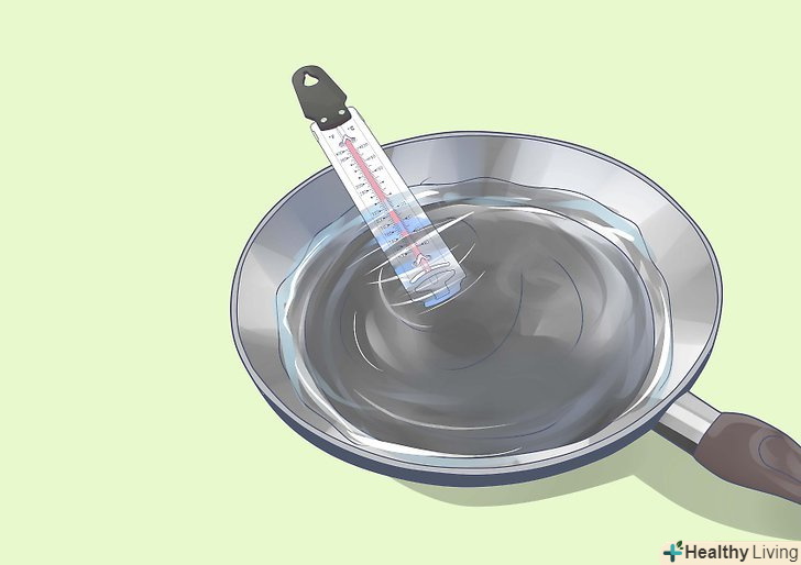 Прикріпіть термометр до внутрішньої сторони сковороди і перевірте температуру води. терапія з гарячими каменями вимагає певної температури. Коли термометр покаже 48,89°С, зніміть сковорідку з плити і злийте воду.