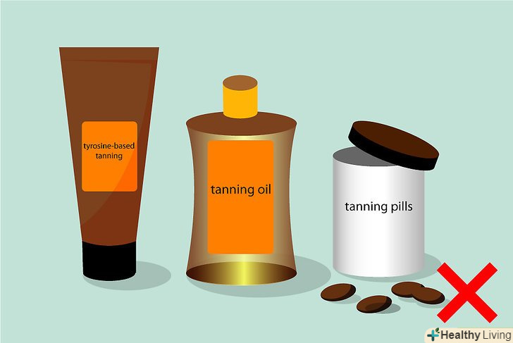 Уникайте використання прискорювачів засмаги на основі тирозину, лосьйонів, підсилювачів для засмаги/ін'єкцій або застосування таблеток. ("прискорювачі засмаги" не схвалені Федерацією управління США з контролю якості лікарських препаратів). Не вірте у всю цю нісенітницю, яку розповідають про тирозин. Так, це амінокислота, яку ваше тіло використовує для отримання меланіну - речовини, яка сприяє потемнінню шкіри. Частково це правда. Але немає ніяких (ніяких!) доказів того, що тирозин вбирається в вашу шкіру або засвоюється в кишечнику (на випадок якщо ви захочете придбати його в таблетках) і сприяє виробленню меланіну. [3] [4] Навчіться протистояти маркетинговим хитрощам, або ж просто уникайте їх..