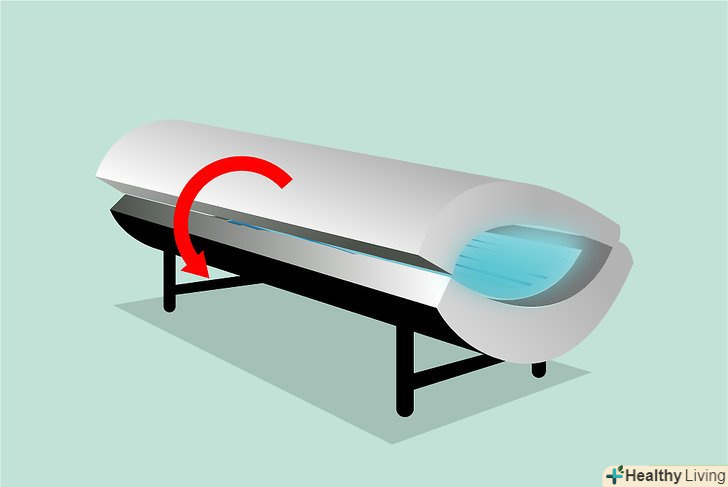 Ляжте в солярій і закрийте кришку. Натисніть кнопку для включення. Не важливо, що ваша шкіра не згорає або що ви хочете отримати хороший результат за витрачені гроші, працівник салону зобов'язаний встановити мінімальний час на таймері. Хороший співробітник знає краще вас, що слід починати з «низького дозування» і з кожним вашим візитом поступово її збільшувати (в залежності від типу шкіри). Моліться, щоб ваша ДНК виявилася пружною і міцною. Просіть богів засмаги позбавити вас від опіків. Уявіть, як ваші клітини у великій кількості виробляють меланін. Або подрімайте (але якщо ви не перебуваєте в солярії-кабіні - дрімати стоячи не рекомендується).