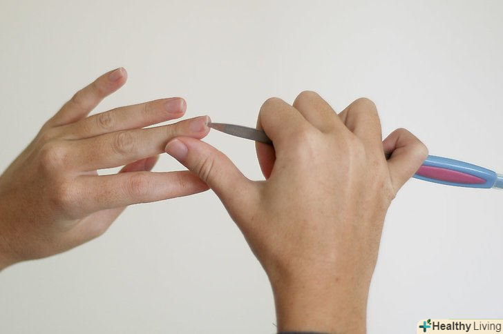 Тепер прийшов час для догляду за нігтями. Видаліть з нігтів старий лак . Підпиляєте нігті і видаліть бруд з-під нігтів краєм пилочки. Потім нанесіть на нігті свіжий лак і почекайте, поки він висохне.