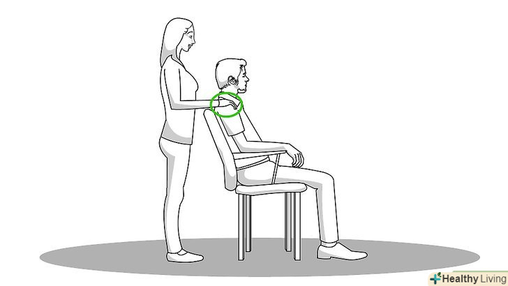 Посадіть людини, якій ви будете робити масаж, і попросіть його влаштуватися зручніше. поясніть, що ви будете робити, і скажіть йому, щоб він повідомив вам про дискомфорт або біль. Встаньте ззаду, покладіть руки йому на плечі. Обидва зробіть кілька глибоких вдихів.- Масажуйте плечі. почніть зі зняття втоми і напруги за допомогою масажу верхньої частини спини, плечей, рук і шиї. М'яко стисніть трапецієподібний м'яз (біля основи шиї), починаючи близько до шиї, потім рухайтеся у напрямку до плеча. Повторіть три рази, з кожним разом збільшуючи тиск.