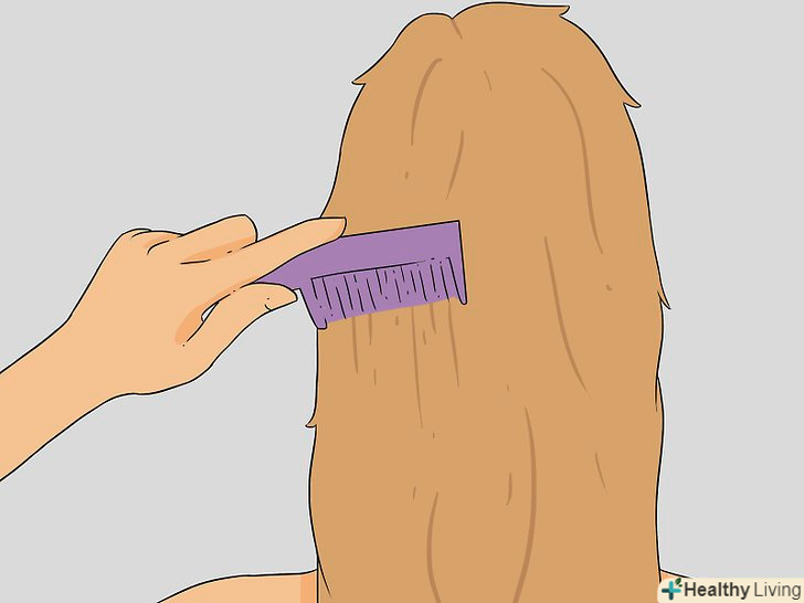 Нанесіть масло. для цієї мети підійдуть більшість кулінарних масел або масажні масла. Наприклад, можна взяти масло авокадо, кокосове масло, мигдальне або гірчичне. Масажними рухами пальців втирайте масло в шкіру голови. Починайте з боків, поступово зміщуючись до верхівки. Також не забудьте нанести масло на передню частину голови і на потилицю. [4]- Наберіть масло в руки і дайте йому трохи зігрітися від тепла ваших рук. Наносите його в невеликих кількостях. Ви завжди встигнете додати більше, якщо потрібно.