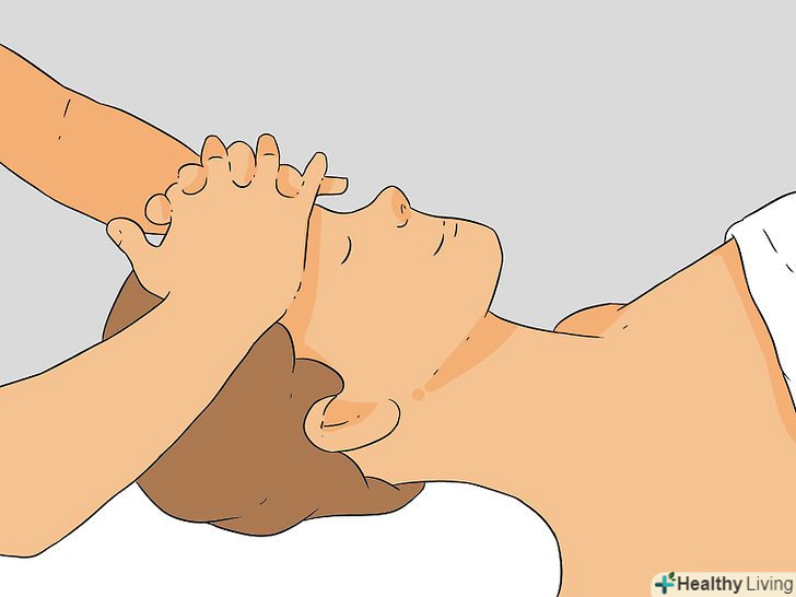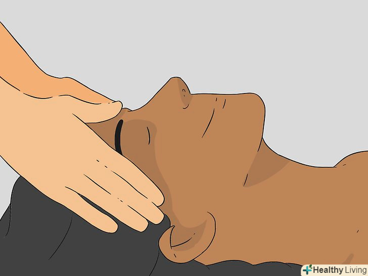Попросіть людину лягти на спину. глибокий масаж має на увазі посилений вплив, тому його краще виконувати, коли людина знаходиться в положенні лежачи на спині. Він повинен лежати горілиць, а ви — стояти біля його голови з боку верхівки. [11]