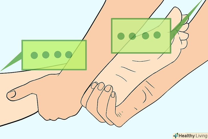 Натисніть на певні області стопи. ви можете зняти напругу з певних областей тіла людини, масажуючи відповідні точки на нозі. За допомогою великого і вказівного пальця натискайте на ці точки, щоб допомогти людині впоратися з конкретними проблемами, як це робиться в рефлексотерапії. Ви можете чинити тиск на: [9]- П'яти і пальці ніг, якщо людина страждає від головного болю або у нього проблеми з сечовипусканням;