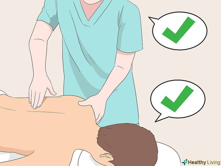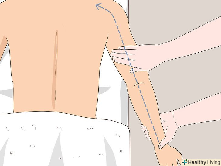 - Коли ви дійдете до верхньої частини спини, попросіть вашого клієнта зігнути лікті, щоб з'єдналися лопатки. Такий стан допоможе вам краще опрацювати м'язи близько лопаток, які в свою чергу мають багато точок напруги. [3]