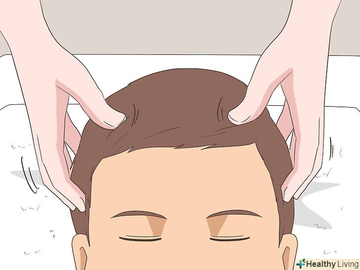 В кінці робимо масаж голови. Попросіть вашого клієнта/партнера повернути голову так, щоб ви змогли її помасажувати. Не варто поспішати, дайте клієнту / партнеру пару хвилин, щоб він/вона зміг/ла зручно влягтися, і укрийте його/її рушником.- Великими пальцями масажуйте верх голови. Для додаткового задоволення можете трохи почухати вашими нігтями шкіру голови.