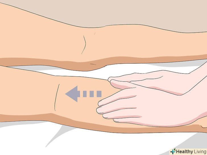 - Просувайтеся вгору до стегна, розтираючи шкіру. Давлять рухами нижньої частини долоні також пройдіться до стегна. У масажі ви завжди повинні рухатися у напрямку до серця.