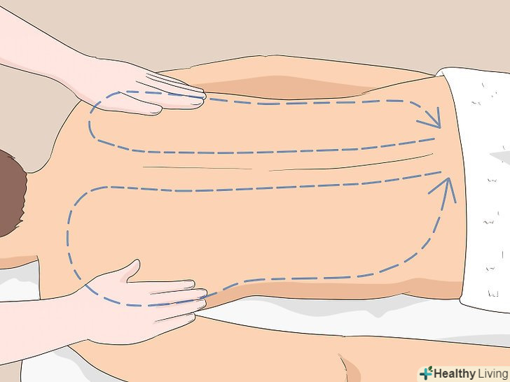 Ваші руки повинні бути в постійному контакті зі шкірою масажованого протягом усього масажу. це сприяє розслаблюючій атмосфері і безперервному протіканню масажу.- Навіть якщо вам треба взяти рушник, додати трохи масла, випити води, то постарайтеся, щоб одна рука завжди перебувала на шкірі масажованого.