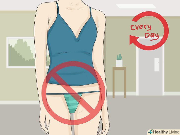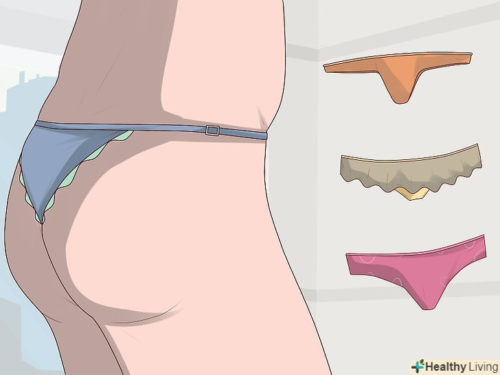 Міняйте стрінги щодня. Одна з проблем, пов'язаних із стрингами, полягає в тому, що вони поширюють бактерії, які можуть викликати інфекції. Оскільки смужка стрінгів знаходиться в постійному контакті з анусом і статевими губами, бактеріям набагато легше переміщатися між ними. Для більшості жінок це не є проблемою, але якщо ви часто страждаєте від грибків і бактеріальних інфекцій, то вам потрібно частіше міняти стрінги. [3]- Вибирайте стрінги на розмір більше, ніж ви зазвичай носите. Вам буде зручніше і безпечніше їх носити. [4]