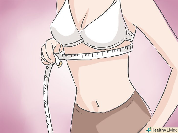 Використовуйте рулетку з м'якої тканини( сантиметр), щоб виміряти окружність під грудьми. Сантиметр необхідно тримати паралельно підлозі і саме на місці, на якому буде сидіти бюстгальтер.