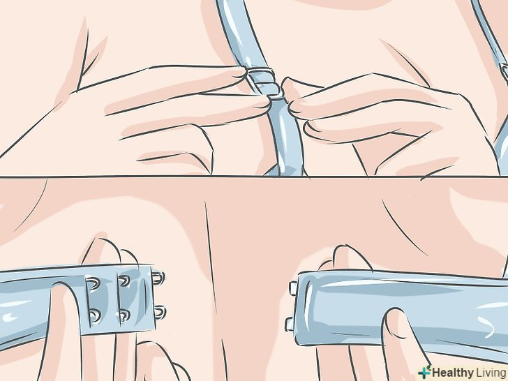 Відрегулюйте гачки і розмір лямок бюстгальтера для досягнення зручної посадки під час примірки. Задня смужка і лямки повинні щільно прилягати до тіла, але не врізатися в шкіру.