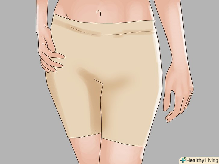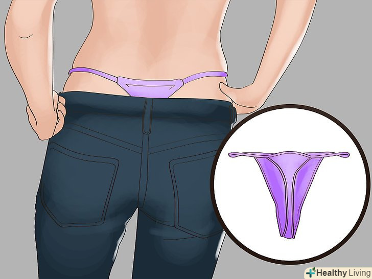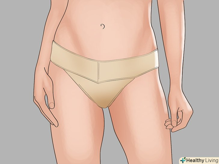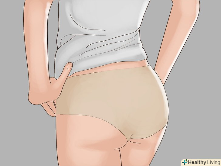 Спробуйте використовувати моделюючу білизну. якщо ви хочете домогтися абсолютно гладкого силуету без використання стрінгів або без повної відмови від трусиків, подумайте про застосування моделює білизни. Таке нижню білизну по довжині зазвичай доходить до середини стегна, тому не створює на сідницях видимих ліній. Також воно тягне небажані нерівності фігури і випускається в різних моделях для різних типів фігур і видів одягу. [10]- Носити або не носити звичайні трусики під моделює білизною - це справа особистих переваг.