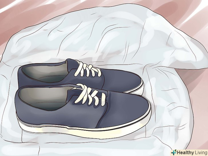 Почистіть взуття. взуття зіпсується, якщо перед зберіганням не очистити її від пилу і бруду. Це в першу чергу відноситься до шкіряного або замшевого взуття, однак, взуття з будь-якого матеріалу потрібно зберігати в чистому вигляді. Навіть якщо прибираєте взуття в шафу на ніч і знову збираєтеся надіти її на наступний ранок, то знову ж потрібно почистити її. Перед зберіганням, залиште, щоб взуття висохла.- Видаліть пил і бруд з шкіряного і замшевого взуття за допомогою м'якої, що не дряпає щітки. Використовуйте спеціальні засоби для видалення плям з такого взуття.