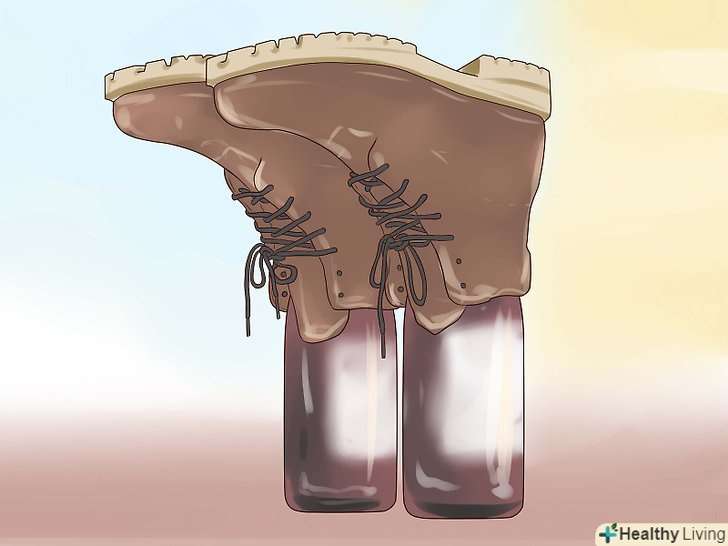 Якщо у вас є пара красивих черевиків, то зберігати їх потрібно у вертикальному положенні. якщо ж так не робити, то через кілька місяців на них утворюються складки, які не можна буде випрямити. Якщо ви не хочете купувати спеціальне пристосування для зберігання черевиків у вертикальному положенні, то можете надіти їх на чисті сухі пляшки з-під вина.