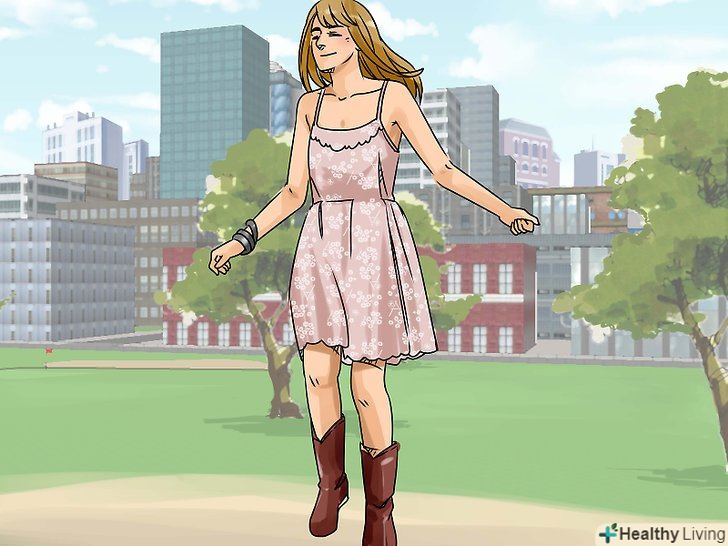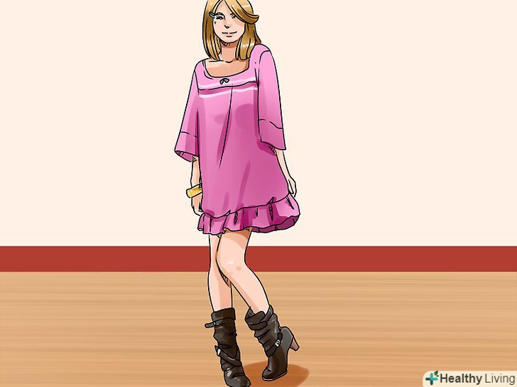 Спробуйте комбінувати кольори і текстури. поєднуйте блискучі шкіряні чоботи зі зручною в'язаною спідницею і колготками або жіночі ковбойські або армійські чоботи з легким струмливим сукнею для поєднання легкого і важкого. [11]