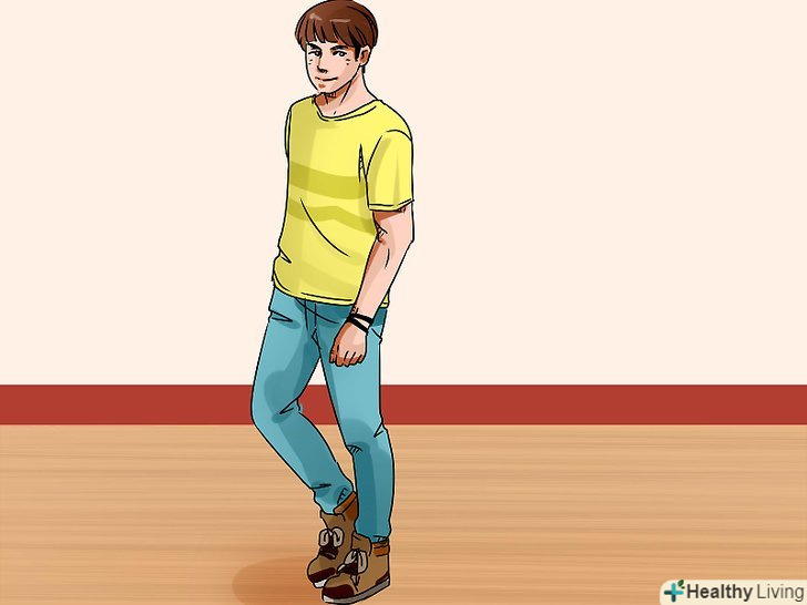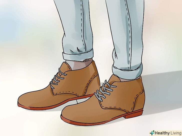 Вибирайте повсякденні черевики. носіть чуккі, також їх називають бакси або бутси, з джинсами і футболкою або брюками і кардиганом на ґудзиках. [12] армійські або байкерські черевики можна носити з темним шкіряним одягом для більш ефектного образу.