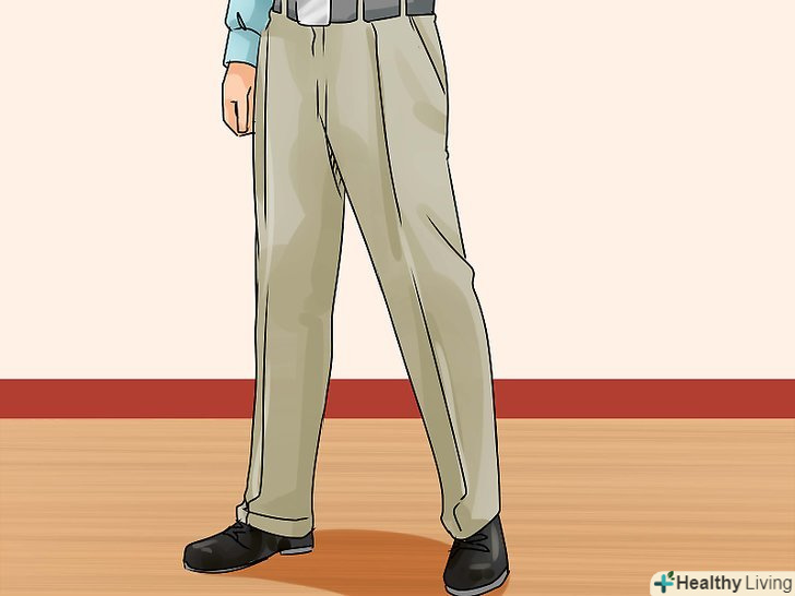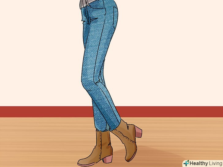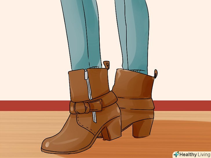 - При широких ступнях слід вибирати чоботи з круглим або мигдалеподібним носком, а не гострим. Уникайте ременів і пряжок біля основи чобіт і намагайтеся носити розкльошені штани поверх них, щоб візуально зменшити ширину ваших ступень. [4]