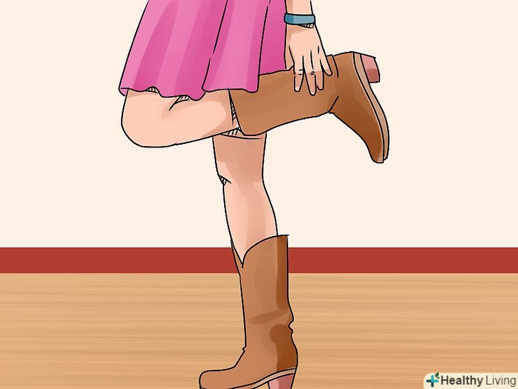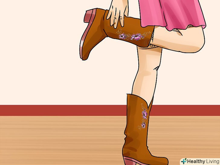 - Між ногою і халявою не повинно залишатися більше 1,3 см вільного місця, але чоботи також не повинні і здавлювати ноги. При виникненні труднощів з надяганням ви можете звернутися до майстра, щоб він підігнав взуття по вашій нозі під замовлення. [14]