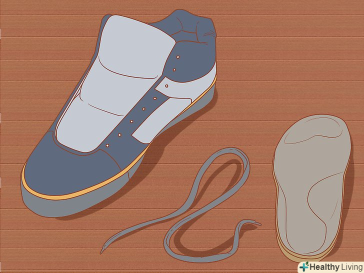 Вийміть з кросівок устілки і шнурки. якщо у ваших кросівок є шнурки, їх треба прати в машині окремо. Шнурки сильно брудняться в місці зіткнення з фурнітурою, тому їх краще вийняти і випрати окремо від кросівок. [4]