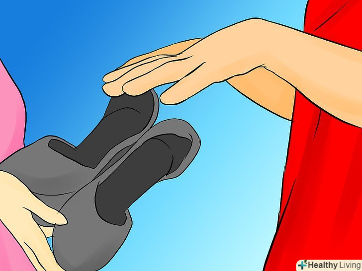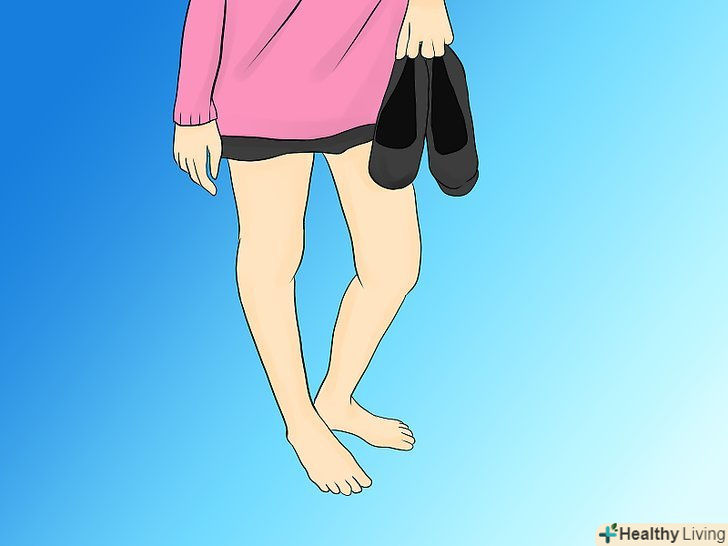 Викиньте ваші туфлі. Якщо це практично, безпечно і гігієнічно, найпростіший спосіб швидкого виправлення ситуації - піти босоніж. Це негайно виправить вашу ситуацію і відновить стійкість, а також дозволить вам знову вільно рухатися.- Не викидайте взуття, якщо вам буде складно ходити босоніж, наприклад, там, де є осколки скла, надмірного тепло або холодно, брудний підлогу або тротуар, можливі гострі об'єкти (наприклад, шприци в туалеті в нічному клубі), або будь-які інші небезпечні речі. Не забувайте також, що інші люди можуть наступити вам на ноги, коли ви танцюєте!