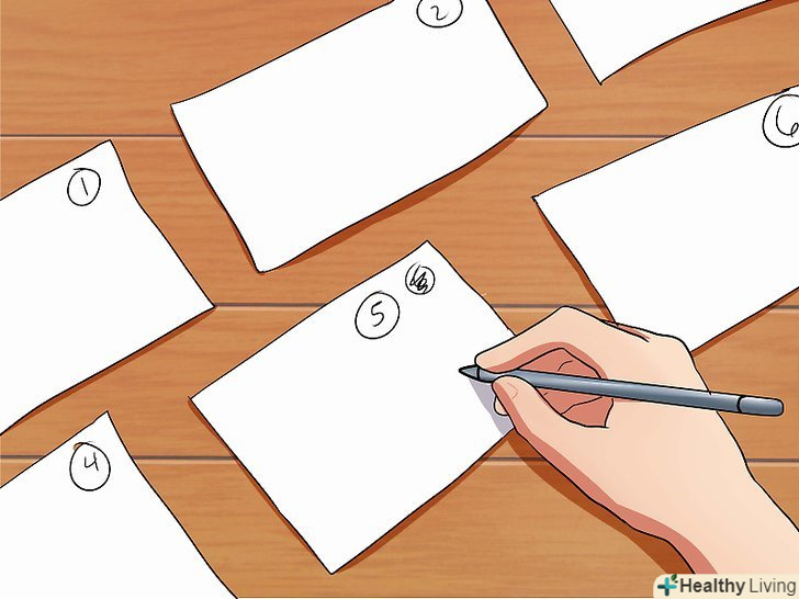 Сцени.зробіть докладний запис про кожну сцену, яку ви здатні собі уявити на окремій картці, не турбуючись з приводу того, що вони поки не поєднуються всі разом. Переконайтеся в тому, щоб кожна ваша сцена була спонукувана вашими персонажами і вашим основним сюжетом. Коли у вас з'явиться хороша вибірка таких сцен, то перегляньте її знову і відберіть найкращі з них.