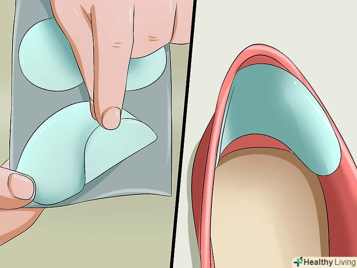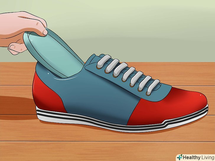 Використовуйте устілки, що поглинають запах. такі устілки можуть мати різний колір, і їх, як правило, підрізають щоб вони відповідали формі вашої ступні. Вони добре підходять для сандалій, взуття з високими підборами або взуття з відкритим носком.- Закріпіть устілки всередині взуття невеликими смужками двостороннього скотча або гумовим клеєм (пари крапель буде достатньо). Скотч або клей допоможуть устілці залишатися на місці, при цьому ви зможете легко її вийняти.