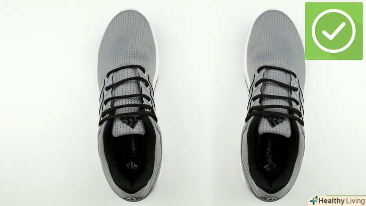 - Закінчіть шнурівку. як тільки ви дійшли до останніх очок, ще раз перевірте, що шнурки рівні. Вам, можливо, доведеться трохи вирівняти їх по всій довжині взуття.