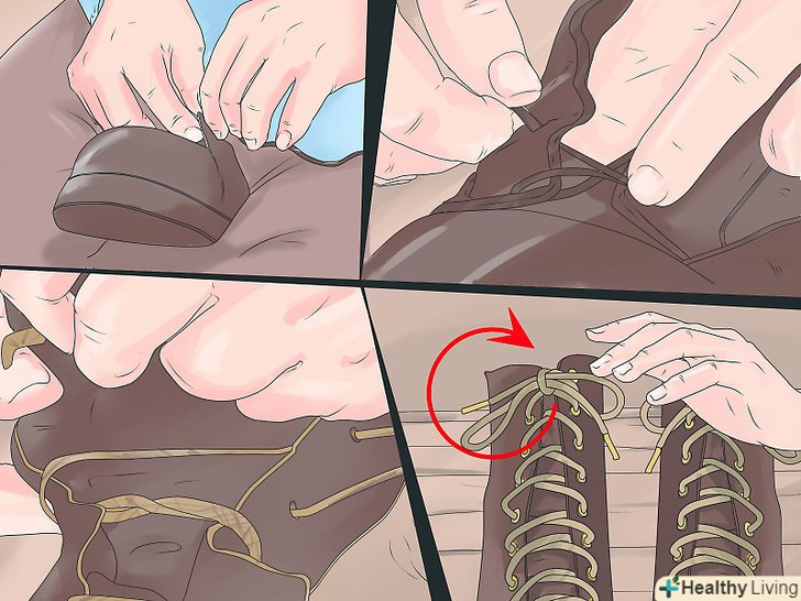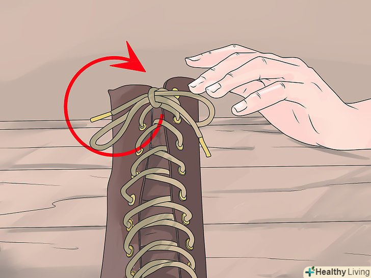 - Якщо ви зашнурували черевики прямо через шнурок, шнурки закінчаться на одній стороні у верхній частині. Просто зав'яжіть їх зверху в швидкий вузол, заправте, і ви готові йти.