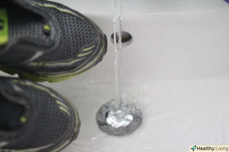Ретельно сполосніть спортивне взуття теплою водою. потрясіть її, щоб видалити надлишки води, і набийте взуття всередині сухими ганчірками або паперовими рушниками. Чи не набивайте взуття газетами, інакше газетні малюнки віддрукуються на взутті. Поставте взуття сушитися. Час від часу міняйте ганчірки або паперові рушники, щоб прискорити процес сушіння. На повне висихання спортивного взуття може знадобитися цілий день або більше.