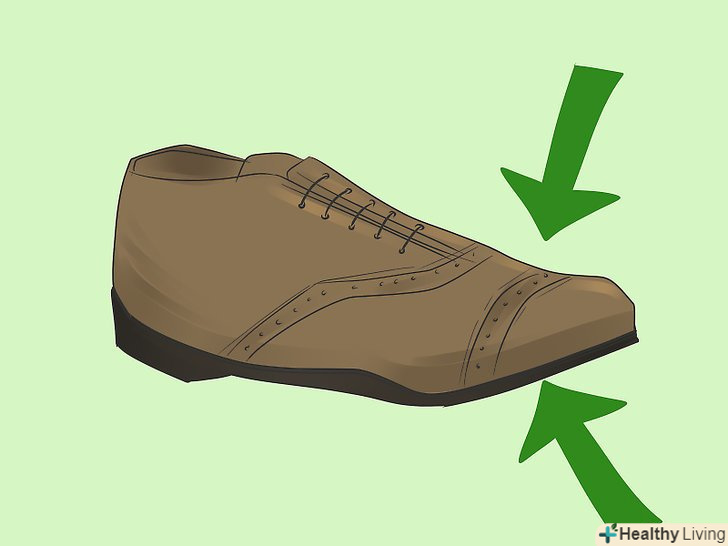 Прикладіть нову підошву до низу взуття і сильно притисніть. якщо клей повинен схопитися після нанесення, почекайте стільки, скільки вказано в інструкції, і тільки потім приступайте до склеювання. Починайте прикладати підошву з носка і поступово прикладіть її рівно у всіх місцях. Переконавшись, що підошва лежить рівно, сильно притисніть її до взуття. [5]