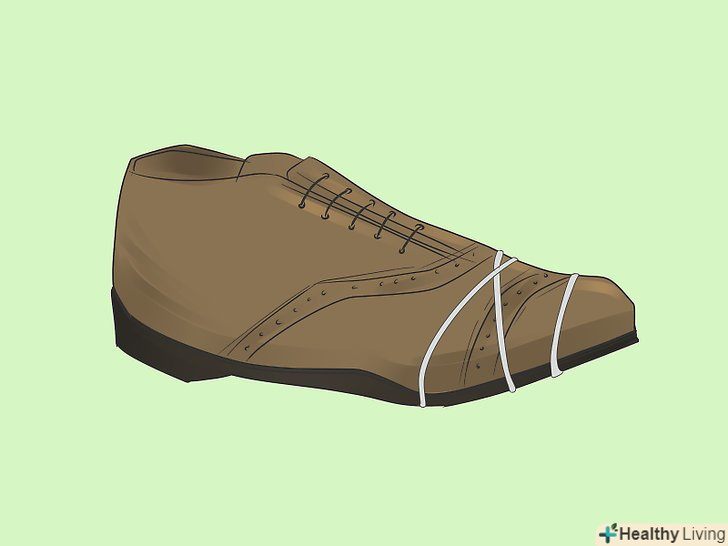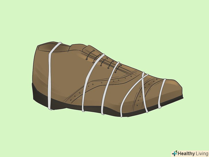 Закріпіть підошву за допомогою гумок або скотча або притисніть її чимось важким. підошва повинна бути щільно притиснута до черевика протягом усього часу висихання. У місці склеювання обмотайте черевик гумкою або скотчем або покладіть на підошву важкий предмет. [10]