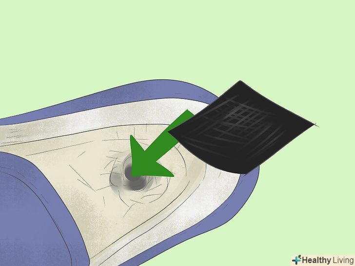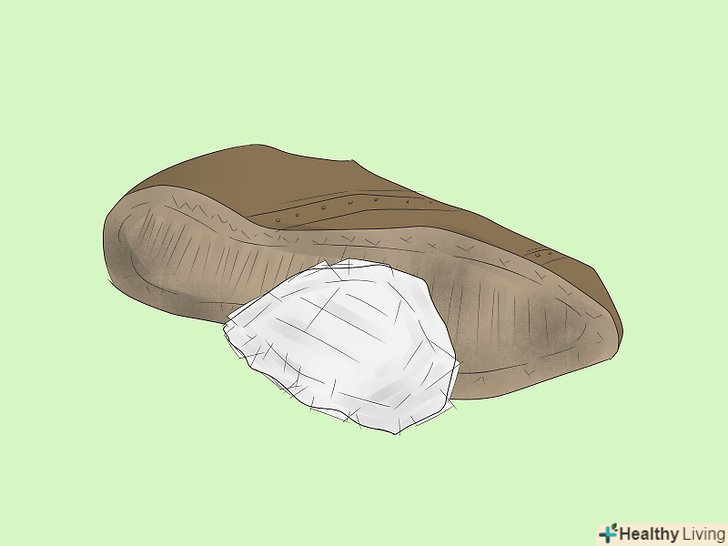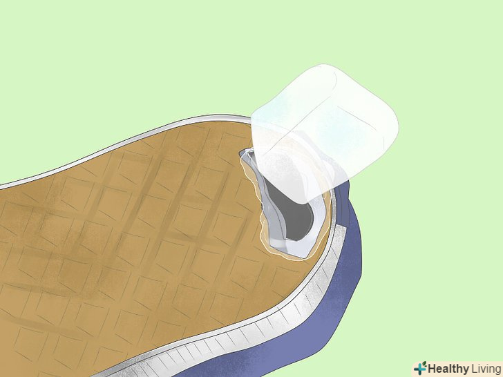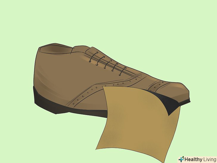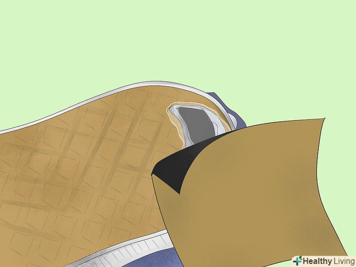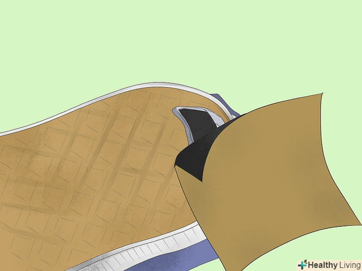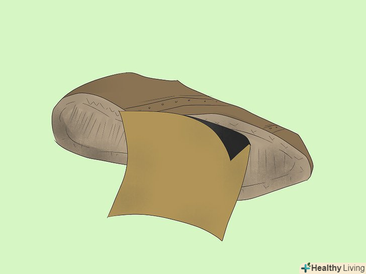 Наклейте шматок скотча поверх діри всередині черевика. зніміть устілку і заклейте дірку клейкою стрічкою. Якщо дірки не видно зсередини, вставте палець в дірку з боку підошви і подивіться, в якому місці вийшов палець. [15]
