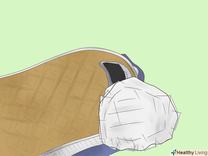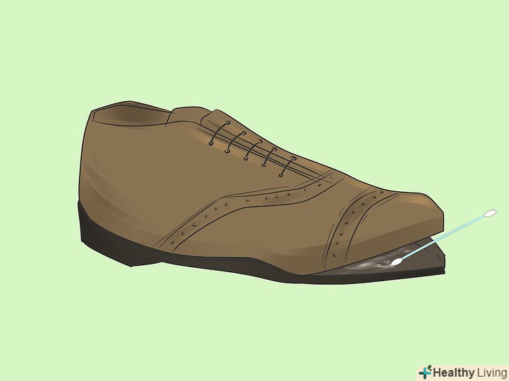 Очистіть ділянку навколо дірки від забруднень. Візьміть ганчірку, змочіть її теплою водою або спиртом і очистіть продірявився ділянку підошви від бруду. Закінчивши з очищенням, дайте волозі висохнути. [13]