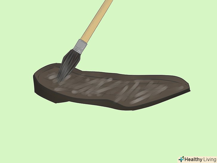 Нанесіть Взуттєвий клей на нову підошву за допомогою кисті або ватного диска. уважно дотримуйтесь вказівок на упаковці. Справа в тому, що деякі клеї треба витримувати протягом декількох хвилин після нанесення, і тільки потім можна починати склеювання. Інші клеї необхідно нагрівати, щоб вони почали діяти. [4]- Клей для взуття можна придбати у взуттєвих і спортивних магазинах, а також в супермаркетах.