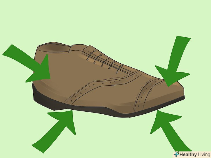 Притисніть підошву до низу взуття. дійте акуратно, не допускайте попадання клею на шкіру. Нічого страшного, якщо якась частина клею витече і засохне. Ви зможете видалити засохлі залишки шкіркою.