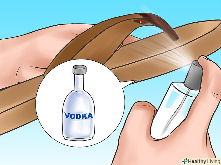 Розпиліть горілку на поверхню сандалі. так само як і спирт, це допоможе усунути неприємний запах. Налийте трохи горілки у флакон з розпилювачем і обприскати ваші сандалі. Залиште їх висихати на сонці протягом декількох годин. [9]