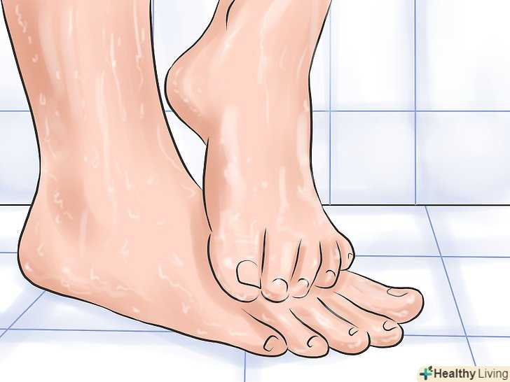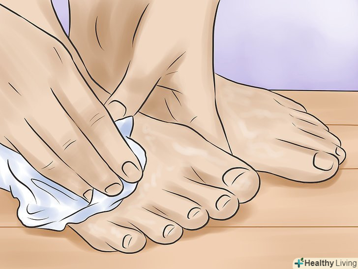 Добре просушіть ноги. виходячи з душу, не зупиняйтеся тільки на зоні щиколоток. Ретельно витріть махровим рушником ступні, в тому числі місця між пальцями, щоб запобігти появі будь-яких грибкових захворювань. [12]- Якщо вас турбує грибкова інфекція, в такому випадку ви можете подумати про щоденне використання тальку для ніг.