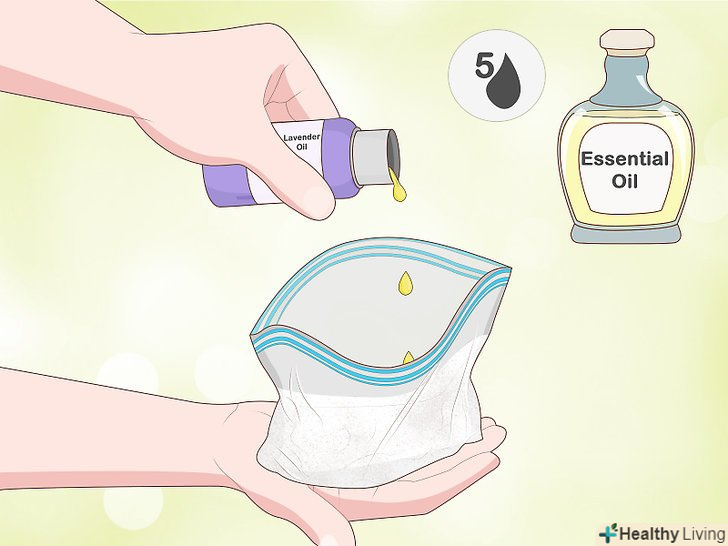 Додайте ефірні масла, якщо хочете надати порошку аромату. масла лаванди і шавлії мають антибактеріальні властивості і стануть прекрасним доповненням до порошкоподібного дезодоранту. Надайте дезодоранту аромат свого улюбленого ефірного масла. Додайте 5 крапель олії в порошок, закрийте пакет і добре перемішайте. [11]- Не сипте харчову соду в взуття. Сама по собі вона може привести до висихання шкіри.