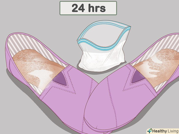 Висипте порошок у взуття і залиште на 8 годин. висипте достатньо порошку, щоб повністю покрити устілки. Потім залиште порошок на ніч. Якщо взуття видає сильний амбре, залиште порошок на весь день. [12]