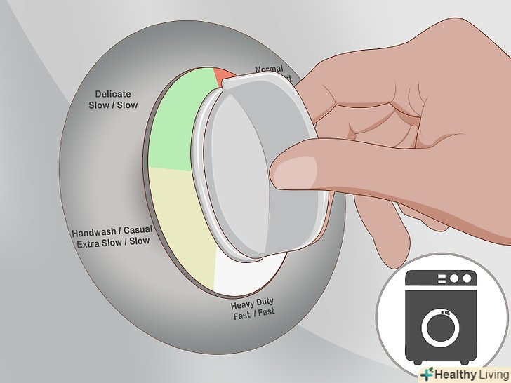 Встановіть на пральній машині режим делікатного прання в холодній воді. виберіть самий дбайливий режим. Він може бути підписаний як «Делікатне прання» або «ручне прання». Налаштуйте пральну машину на прання в холодній воді. [6]