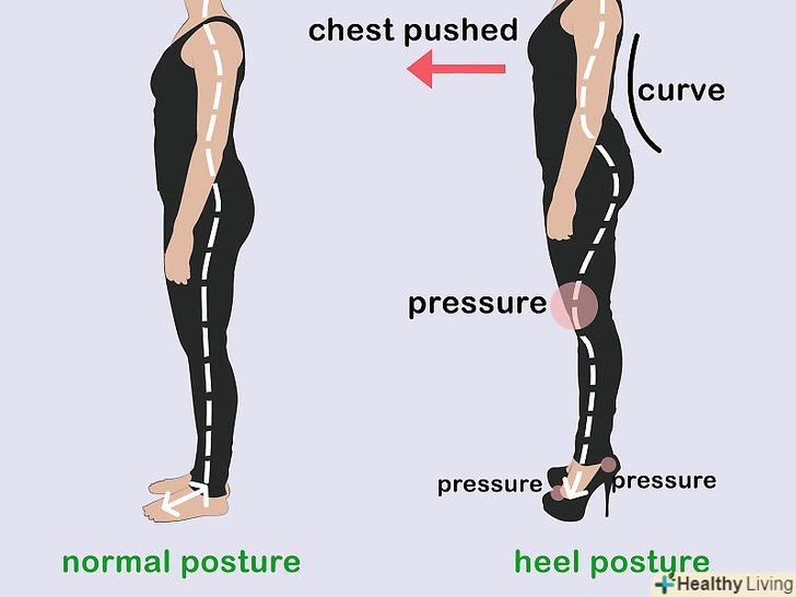Купуйте якісне взуття. недороге придбання викликає прекрасні відчуття при покупці, але взуття – це не той предмет гардероба, на якому варто економити. Перед покупкою взуття, особливо якщо вона на високих підборах, уважно розгляньте її, і переконайтеся, що купуєте виріб від надійного бренду. Ваші ноги є основою тіла, так що дуже важливо піклуватися про них і підтримувати їх здоров'я.