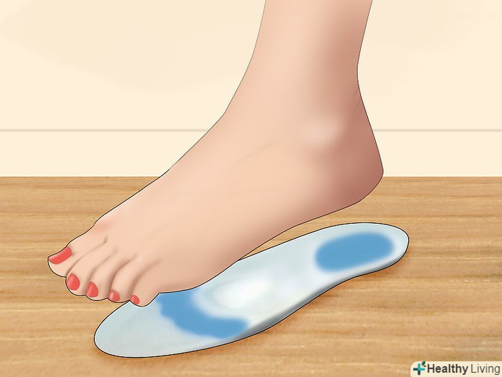 Купіть спеціальні вставки для взуття на високих підборах. такі вкладки більш надійно фіксують стопу у взутті, що дозволить носити її більш тривалий час. У продажу є вставки з піни і з гелю. Вставки з піни можна підігнати під потрібний розмір, а гелеві – виготовлені з прозорого матеріалу, що забезпечить вам комфорт непомітно для стороннього погляду. Вставки допомагають утримувати стопу на місці і для зручності підтримують правильний її підйом. [5]