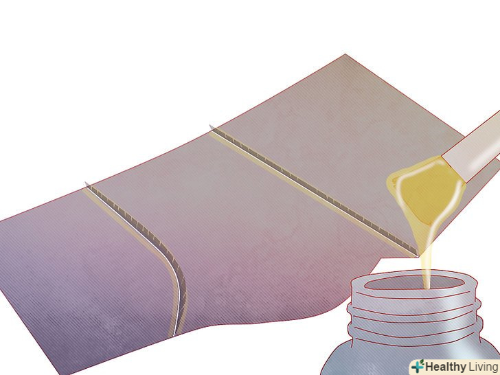 Намажте гумовим клеєм кут картонної картки. змастіть тонким шаром клею обидві сторони шва.